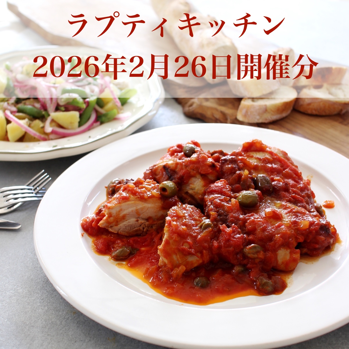 - チキンのケッパートマト煮込み