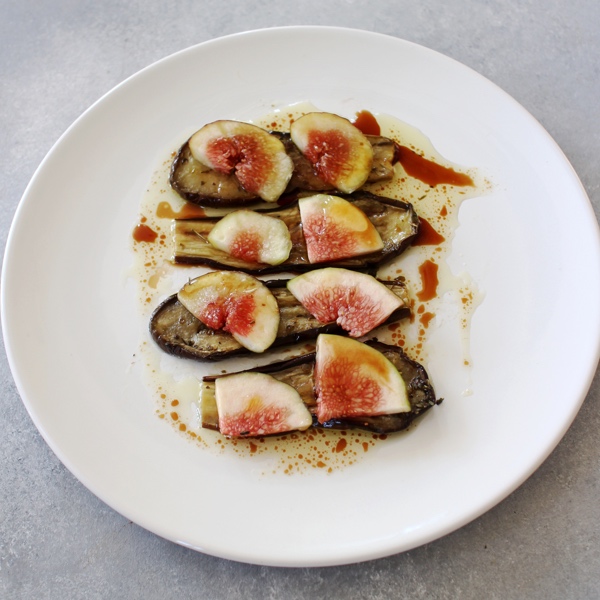 ナスのアンティーブマリネにスライスしたイチジクをのせ、手順1をかける。