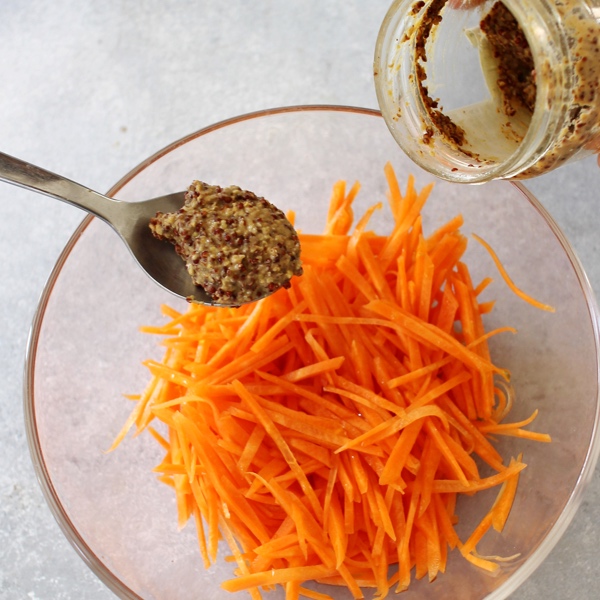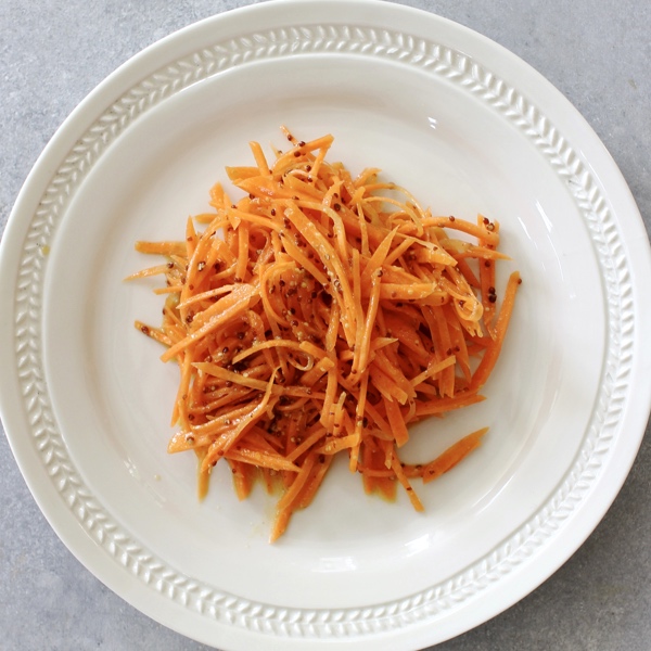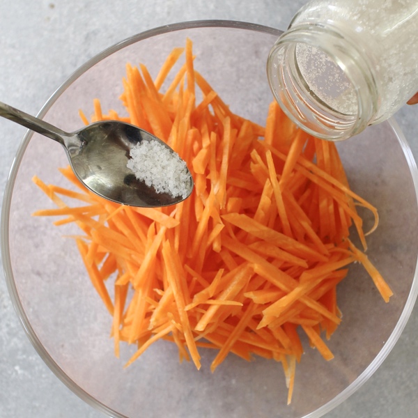 人参を千切りにし、ソルトゲランドをなじませ10分ほど、置いてしんなりさせる。