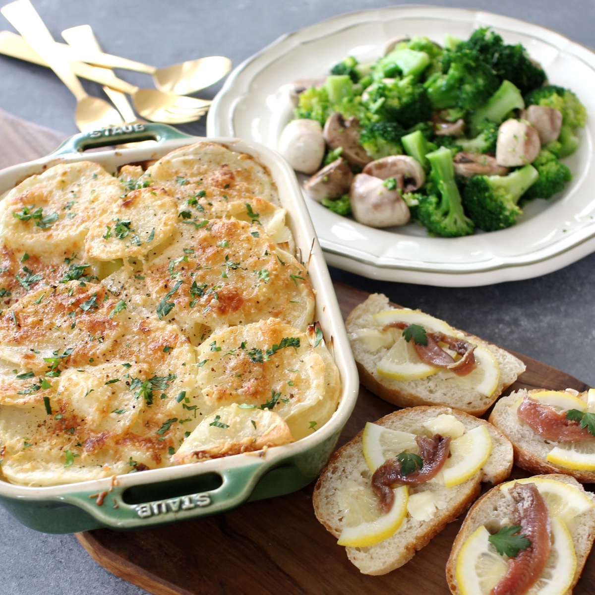ほくほくグラタン、彩り綺麗なサラダ&オープンサンドのとっておきの3皿は、